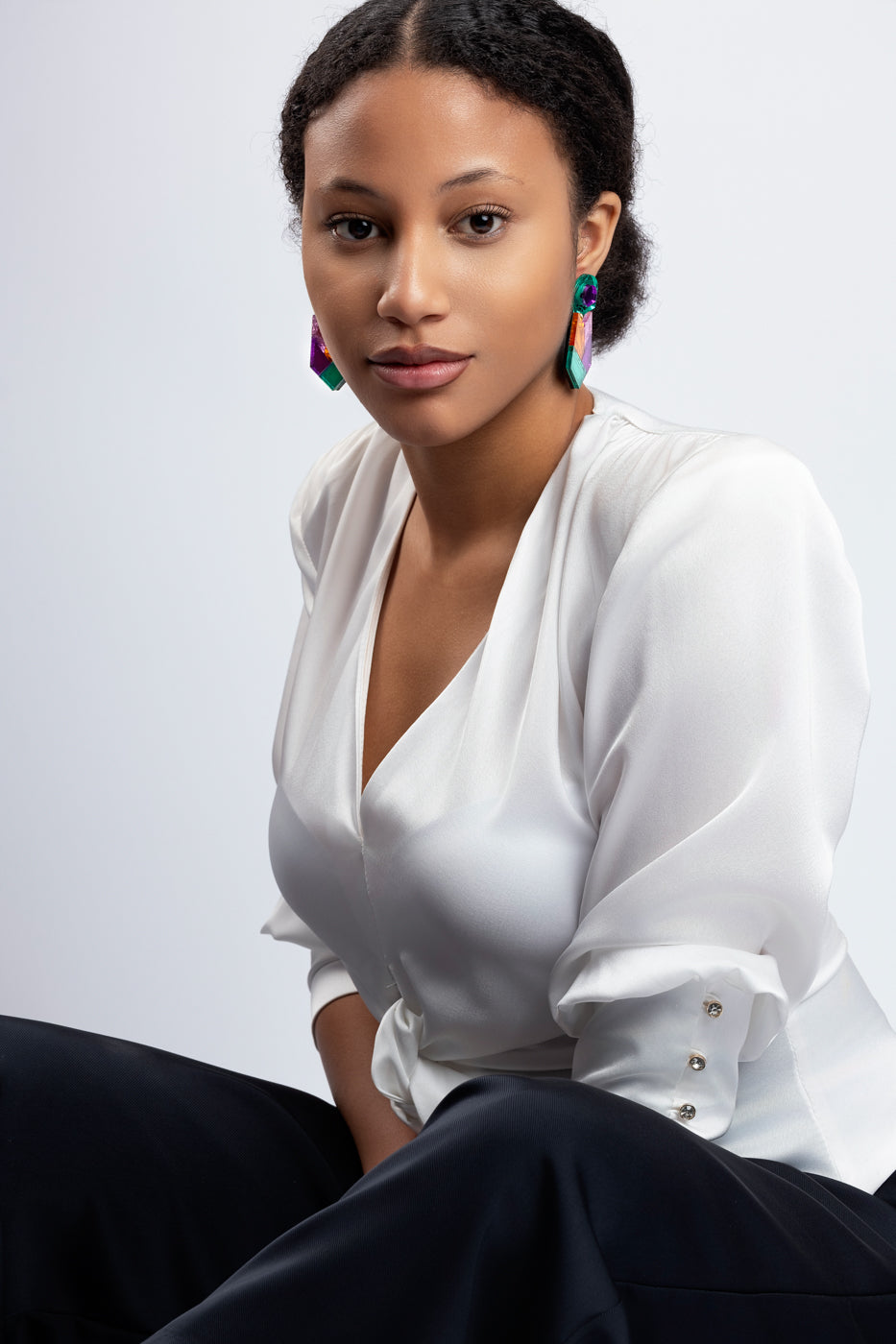 Pendiente de metacrilato con diseño geométrico. Disponible en varios colores.