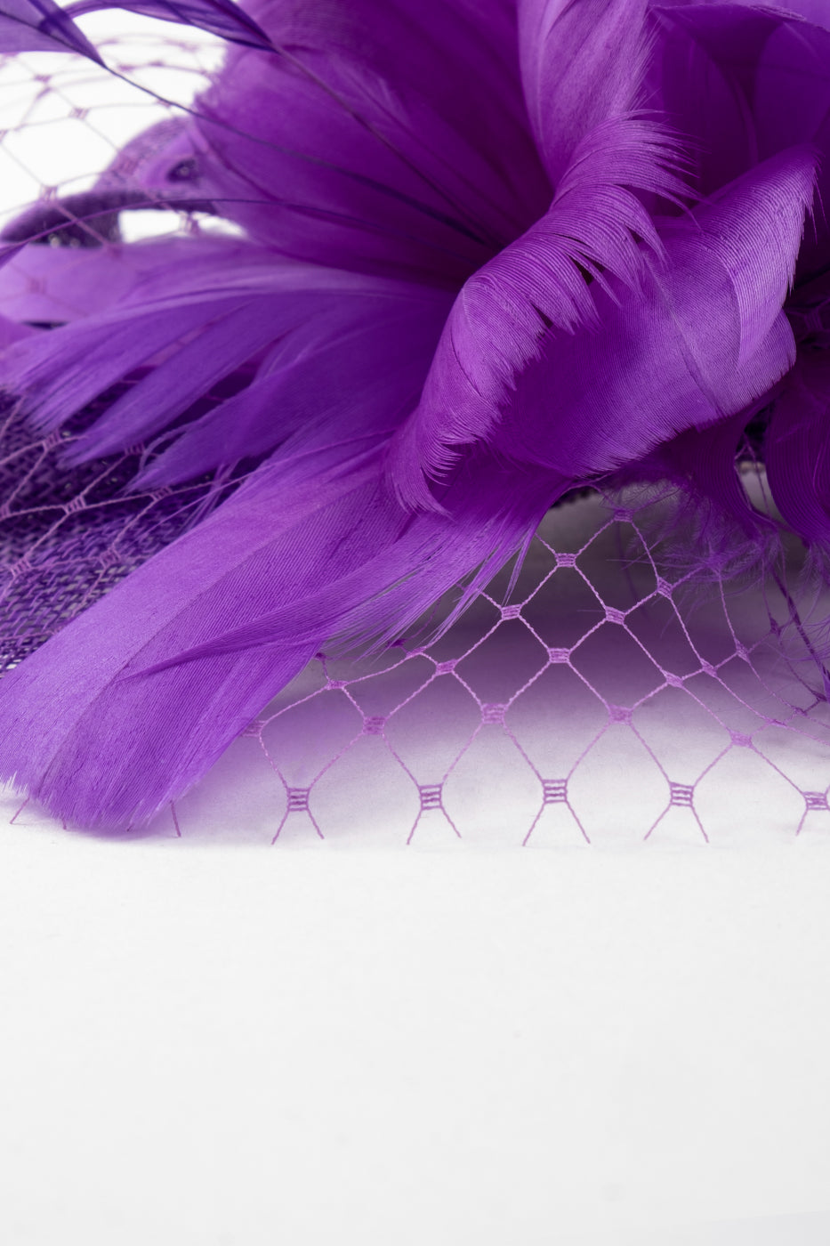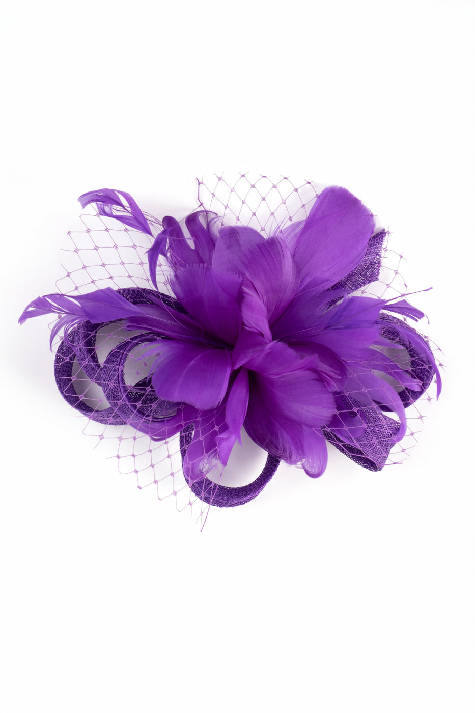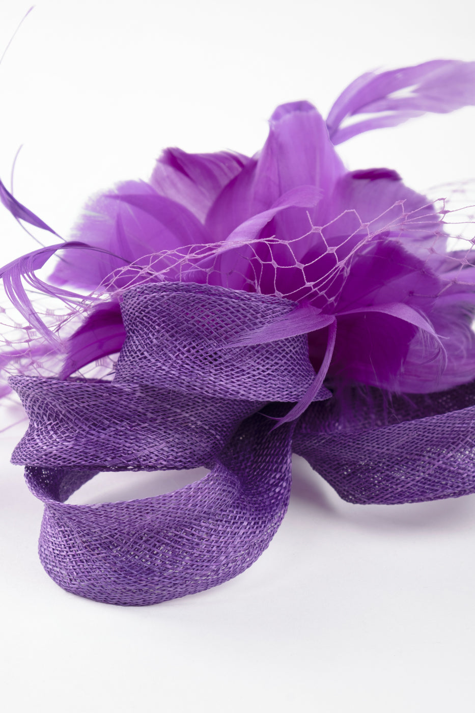 Tocado o aplicación disponible en varios colores, realizado en sinamay con conjunto de plumas y red al tono. Se puede utilizar para adornar el cabello, la cintura o el hombro de una prenda. Al ser un artículo hecho a mano, cada pieza es única, por lo que puede diferir un poco del modelo de muestra.