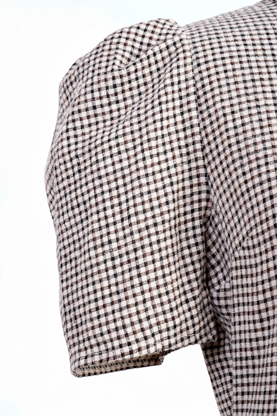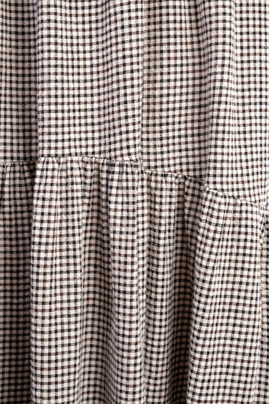 Vestido largo estampado con volantes. Lleva manga abullonada y cremallera trasera.