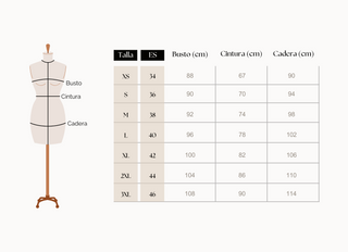 En Ebony Fashion Store queremos ayudarte a encontrar la talla perfecta. Por el momento, disponemos de prendas desde la talla XS hasta la talla 3XL en varias de nuestras colecciones. Consulta la siguiente tabla de medidas para orientarte en tu elección: